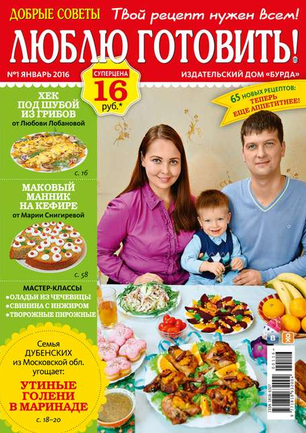 «Добрые советы. Люблю готовить!» — журнал о вкусной еде, не похожий на другие кулинарные издания. Все опубликованные в нем рецепты присланы в редакцию самими читателями. Каждый рецепт прошел конкурсный отбор, а его автор получил денежный приз. Ежемесячно на страницах журнала — более 100 коронных блюд, которые многократно проверены опытными хозяйками и которые можно смело брать в свою коллекцию рецептов тем, кто любит баловать родных и удивлять гостей.