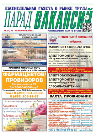 ЕЖЕНЕДЕЛЬНАЯ ГАЗЕТА О РЫНКЕ ТРУДА ПАРАД ВАКАНСИЙ