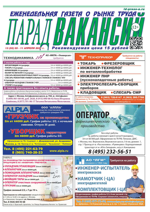 ЕЖЕНЕДЕЛЬНАЯ ГАЗЕТА О РЫНКЕ ТРУДА ПАРАД ВАКАНСИЙ