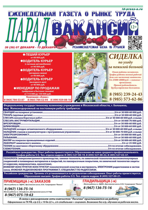 ЕЖЕНЕДЕЛЬНАЯ ГАЗЕТА О РЫНКЕ ТРУДА ПАРАД ВАКАНСИЙ