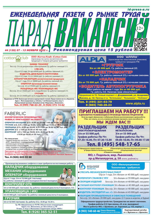 ЕЖЕНЕДЕЛЬНАЯ ГАЗЕТА О РЫНКЕ ТРУДА ПАРАД ВАКАНСИЙ