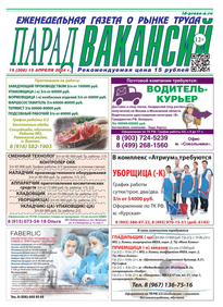 ЕЖЕНЕДЕЛЬНАЯ ГАЗЕТА О РЫНКЕ ТРУДА ПАРАД ВАКАНСИЙ (19 (212))