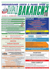 ЕЖЕНЕДЕЛЬНАЯ ГАЗЕТА О РЫНКЕ ТРУДА ПАРАД ВАКАНСИЙ (33 (175))