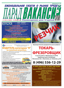 ЕЖЕНЕДЕЛЬНАЯ ГАЗЕТА О РЫНКЕ ТРУДА ПАРАД ВАКАНСИЙ (16 (158))