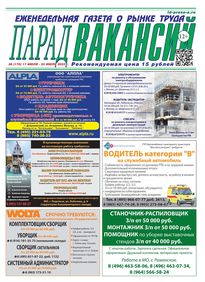 ЕЖЕНЕДЕЛЬНАЯ ГАЗЕТА О РЫНКЕ ТРУДА ПАРАД ВАКАНСИЙ (15 (157))