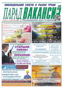 ЕЖЕНЕДЕЛЬНАЯ ГАЗЕТА О РЫНКЕ ТРУДА ПАРАД ВАКАНСИЙ (№ 19 (19))
