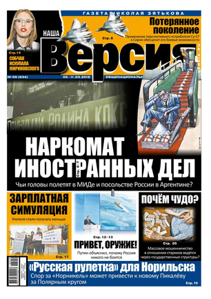 Общероссийская еженедельная газета «Наша Версия» сегодня - это один из ведущих еженедельников журналистских расследований – жесткий и информативный, остроумный и понятный.