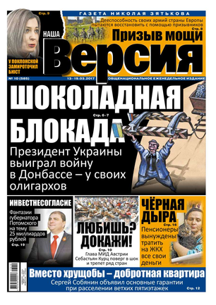 Общероссийская еженедельная газета «Наша Версия» сегодня - это один из ведущих еженедельников журналистских расследований – жесткий и информативный, остроумный и понятный.