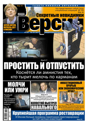 Общероссийская еженедельная газета «Наша Версия» сегодня - это один из ведущих еженедельников журналистских расследований – жесткий и информативный, остроумный и понятный.