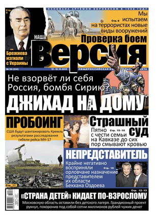 Общероссийская еженедельная газета «Наша Версия» сегодня - это один из ведущих еженедельников журналистских расследований – жесткий и информативный, остроумный и понятный.