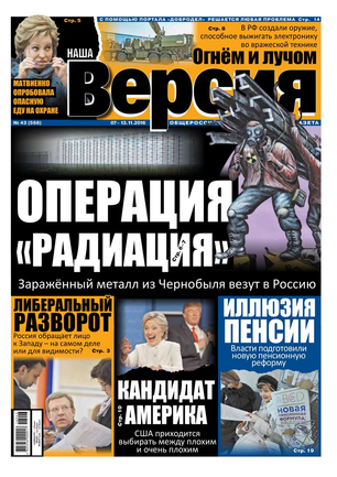 Общероссийская еженедельная газета «Наша Версия» сегодня - это один из ведущих еженедельников журналистских расследований – жесткий и информативный, остроумный и понятный.