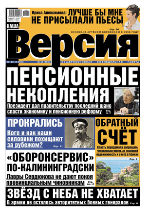 Общероссийская еженедельная газета «Наша Версия» сегодня - это один из ведущих еженедельников журналистских расследований – жесткий и информативный, остроумный и понятный.