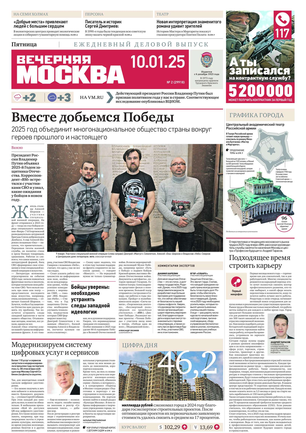 «Вечерняя Москва» — ежедневная российская вечерняя газета, старейшее из вечерних изданий в России, учрежденное в 1923 году. Выходит пять дней в неделю, кроме субботы и воскресенья. Отличается тем, что рассказывает о событиях еще не завершившегося дня. Оперативно освещает хронику и особенности жизни Москвы, охватывает все слои общества и большинство профессиональных и возрастных групп читателей.Издание представлено тремя выпусками – утренним ежедневным, вечерним (выходит три раза в неделю), еженедельным (выходит по четвергам).
