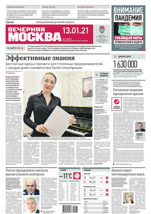 «Вечерняя Москва» — ежедневная российская вечерняя газета, старейшее из вечерних изданий в России, учрежденное в 1923 году. Выходит пять дней в неделю, кроме субботы и воскресенья. Отличается тем, что рассказывает о событиях еще не завершившегося дня. Оперативно освещает хронику и особенности жизни Москвы, охватывает все слои общества и большинство профессиональных и возрастных групп читателей.Издание представлено тремя выпусками – утренним ежедневным, вечерним (выходит три раза в неделю), еженедельным (выходит по четвергам).