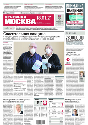 «Вечерняя Москва» — ежедневная российская вечерняя газета, старейшее из вечерних изданий в России, учрежденное в 1923 году. Выходит пять дней в неделю, кроме субботы и воскресенья. Отличается тем, что рассказывает о событиях еще не завершившегося дня. Оперативно освещает хронику и особенности жизни Москвы, охватывает все слои общества и большинство профессиональных и возрастных групп читателей.Издание представлено тремя выпусками – утренним ежедневным, вечерним (выходит три раза в неделю), еженедельным (выходит по четвергам).