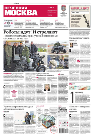 Еженедельный выпуск «Вечерней Москвы» — это значимые события недели, афиша города, новости из сферы отдыха и развлечений, телепрограмма с анонсами и комментариями, авторские колонки журналистов и авторитетные мнения экспертов, детская страничка, специальная рубрика «Золушка», интересные репортажи о необычных судьбах московских жителей, постоянные конкурсы и викторины.