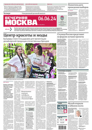 «Вечерняя Москва» — ежедневная российская вечерняя газета, старейшее из вечерних изданий в России, учрежденное в 1923 году. Выходит пять дней в неделю, кроме субботы и воскресенья. Отличается тем, что рассказывает о событиях еще не завершившегося дня. Оперативно освещает хронику и особенности жизни Москвы, охватывает все слои общества и большинство профессиональных и возрастных групп читателей.Издание представлено тремя выпусками – утренним ежедневным, вечерним (выходит три раза в неделю), еженедельным (выходит по четвергам).