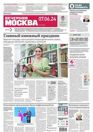 «Вечерняя Москва» — ежедневная российская вечерняя газета, старейшее из вечерних изданий в России, учрежденное в 1923 году. Выходит пять дней в неделю, кроме субботы и воскресенья. Отличается тем, что рассказывает о событиях еще не завершившегося дня. Оперативно освещает хронику и особенности жизни Москвы, охватывает все слои общества и большинство профессиональных и возрастных групп читателей.Издание представлено тремя выпусками – утренним ежедневным, вечерним (выходит три раза в неделю), еженедельным (выходит по четвергам).