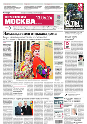 «Вечерняя Москва» — ежедневная российская вечерняя газета, старейшее из вечерних изданий в России, учрежденное в 1923 году. Выходит пять дней в неделю, кроме субботы и воскресенья. Отличается тем, что рассказывает о событиях еще не завершившегося дня. Оперативно освещает хронику и особенности жизни Москвы, охватывает все слои общества и большинство профессиональных и возрастных групп читателей.Издание представлено тремя выпусками – утренним ежедневным, вечерним (выходит три раза в неделю), еженедельным (выходит по четвергам).