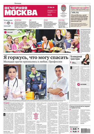 «Вечерняя Москва» — ежедневная российская вечерняя газета, старейшее из вечерних изданий в России, учрежденное в 1923 году. Выходит пять дней в неделю, кроме субботы и воскресенья. Отличается тем, что рассказывает о событиях еще не завершившегося дня. Оперативно освещает хронику и особенности жизни Москвы, охватывает все слои общества и большинство профессиональных и возрастных групп читателей.Издание представлено тремя выпусками – утренним ежедневным, вечерним (выходит три раза в неделю), еженедельным (выходит по четвергам).