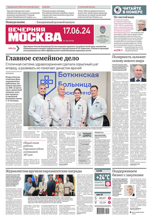 «Вечерняя Москва» — ежедневная российская вечерняя газета, старейшее из вечерних изданий в России, учрежденное в 1923 году. Выходит пять дней в неделю, кроме субботы и воскресенья. Отличается тем, что рассказывает о событиях еще не завершившегося дня. Оперативно освещает хронику и особенности жизни Москвы, охватывает все слои общества и большинство профессиональных и возрастных групп читателей.Издание представлено тремя выпусками – утренним ежедневным, вечерним (выходит три раза в неделю), еженедельным (выходит по четвергам).