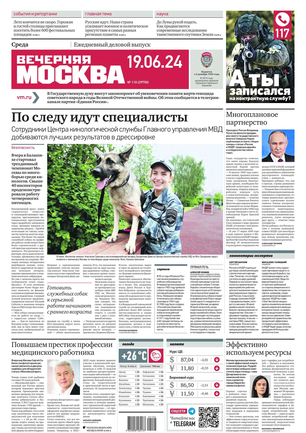 «Вечерняя Москва» — ежедневная российская вечерняя газета, старейшее из вечерних изданий в России, учрежденное в 1923 году. Выходит пять дней в неделю, кроме субботы и воскресенья. Отличается тем, что рассказывает о событиях еще не завершившегося дня. Оперативно освещает хронику и особенности жизни Москвы, охватывает все слои общества и большинство профессиональных и возрастных групп читателей.Издание представлено тремя выпусками – утренним ежедневным, вечерним (выходит три раза в неделю), еженедельным (выходит по четвергам).