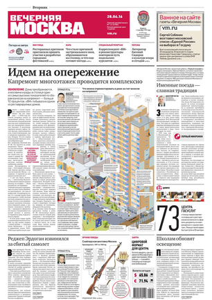 «Вечерняя Москва» — ежедневная российская вечерняя газета, старейшее из вечерних изданий в России, учрежденное в 1923 году. Выходит пять дней в неделю, кроме субботы и воскресенья. Отличается тем, что рассказывает о событиях еще не завершившегося дня. Оперативно освещает хронику и особенности жизни Москвы, охватывает все слои общества и большинство профессиональных и возрастных групп читателей.Издание представлено тремя выпусками – утренним ежедневным, вечерним (выходит три раза в неделю), еженедельным (выходит по четвергам).