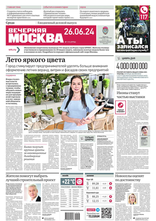 «Вечерняя Москва» — ежедневная российская вечерняя газета, старейшее из вечерних изданий в России, учрежденное в 1923 году. Выходит пять дней в неделю, кроме субботы и воскресенья. Отличается тем, что рассказывает о событиях еще не завершившегося дня. Оперативно освещает хронику и особенности жизни Москвы, охватывает все слои общества и большинство профессиональных и возрастных групп читателей.Издание представлено тремя выпусками – утренним ежедневным, вечерним (выходит три раза в неделю), еженедельным (выходит по четвергам).