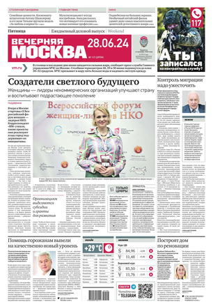 «Вечерняя Москва» — ежедневная российская вечерняя газета, старейшее из вечерних изданий в России, учрежденное в 1923 году. Выходит пять дней в неделю, кроме субботы и воскресенья. Отличается тем, что рассказывает о событиях еще не завершившегося дня. Оперативно освещает хронику и особенности жизни Москвы, охватывает все слои общества и большинство профессиональных и возрастных групп читателей.Издание представлено тремя выпусками – утренним ежедневным, вечерним (выходит три раза в неделю), еженедельным (выходит по четвергам).