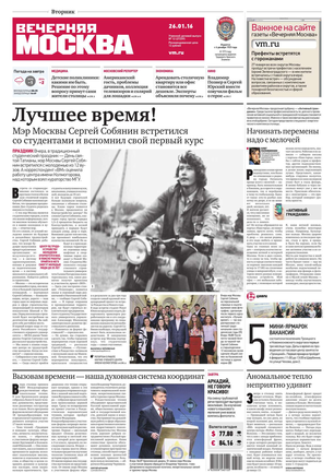 «Вечерняя Москва» — ежедневная российская вечерняя газета, старейшее из вечерних изданий в России, учрежденное в 1923 году. Выходит пять дней в неделю, кроме субботы и воскресенья. Отличается тем, что рассказывает о событиях еще не завершившегося дня. Оперативно освещает хронику и особенности жизни Москвы, охватывает все слои общества и большинство профессиональных и возрастных групп читателей.Издание представлено тремя выпусками – утренним ежедневным, вечерним (выходит три раза в неделю), еженедельным (выходит по четвергам).