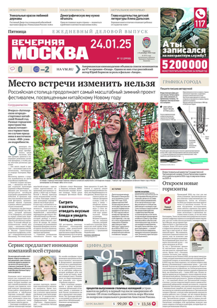 «Вечерняя Москва» — ежедневная российская вечерняя газета, старейшее из вечерних изданий в России, учрежденное в 1923 году. Выходит пять дней в неделю, кроме субботы и воскресенья. Отличается тем, что рассказывает о событиях еще не завершившегося дня. Оперативно освещает хронику и особенности жизни Москвы, охватывает все слои общества и большинство профессиональных и возрастных групп читателей.Издание представлено тремя выпусками – утренним ежедневным, вечерним (выходит три раза в неделю), еженедельным (выходит по четвергам).