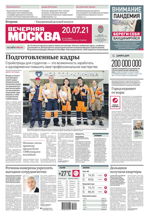 «Вечерняя Москва» — ежедневная российская вечерняя газета, старейшее из вечерних изданий в России, учрежденное в 1923 году. Выходит пять дней в неделю, кроме субботы и воскресенья. Отличается тем, что рассказывает о событиях еще не завершившегося дня. Оперативно освещает хронику и особенности жизни Москвы, охватывает все слои общества и большинство профессиональных и возрастных групп читателей.Издание представлено тремя выпусками – утренним ежедневным, вечерним (выходит три раза в неделю), еженедельным (выходит по четвергам).