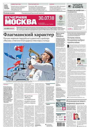 «Вечерняя Москва» — ежедневная российская вечерняя газета, старейшее из вечерних изданий в России, учрежденное в 1923 году. Выходит пять дней в неделю, кроме субботы и воскресенья. Отличается тем, что рассказывает о событиях еще не завершившегося дня. Оперативно освещает хронику и особенности жизни Москвы, охватывает все слои общества и большинство профессиональных и возрастных групп читателей.Издание представлено тремя выпусками – утренним ежедневным, вечерним (выходит три раза в неделю), еженедельным (выходит по четвергам).