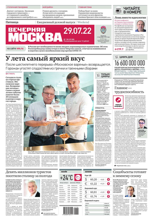 «Вечерняя Москва» — ежедневная российская вечерняя газета, старейшее из вечерних изданий в России, учрежденное в 1923 году. Выходит пять дней в неделю, кроме субботы и воскресенья. Отличается тем, что рассказывает о событиях еще не завершившегося дня. Оперативно освещает хронику и особенности жизни Москвы, охватывает все слои общества и большинство профессиональных и возрастных групп читателей.Издание представлено тремя выпусками – утренним ежедневным, вечерним (выходит три раза в неделю), еженедельным (выходит по четвергам).