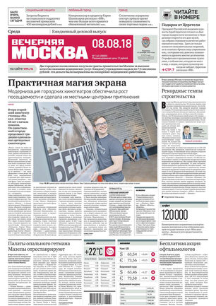«Вечерняя Москва» — ежедневная российская вечерняя газета, старейшее из вечерних изданий в России, учрежденное в 1923 году. Выходит пять дней в неделю, кроме субботы и воскресенья. Отличается тем, что рассказывает о событиях еще не завершившегося дня. Оперативно освещает хронику и особенности жизни Москвы, охватывает все слои общества и большинство профессиональных и возрастных групп читателей.Издание представлено тремя выпусками – утренним ежедневным, вечерним (выходит три раза в неделю), еженедельным (выходит по четвергам).