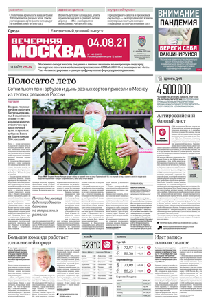«Вечерняя Москва» — ежедневная российская вечерняя газета, старейшее из вечерних изданий в России, учрежденное в 1923 году. Выходит пять дней в неделю, кроме субботы и воскресенья. Отличается тем, что рассказывает о событиях еще не завершившегося дня. Оперативно освещает хронику и особенности жизни Москвы, охватывает все слои общества и большинство профессиональных и возрастных групп читателей.Издание представлено тремя выпусками – утренним ежедневным, вечерним (выходит три раза в неделю), еженедельным (выходит по четвергам).