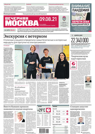 Вечером на страницах «Вечерки» появляются эксклюзивные интервью ньюсмейкеров культуры и шоу-бизнеса, репортажи журналистов по вечерней Москве, афиша нашего города. Один раз в неделю выходит специальный студенческий вечерний номер.