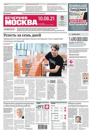«Вечерняя Москва» — ежедневная российская вечерняя газета, старейшее из вечерних изданий в России, учрежденное в 1923 году. Выходит пять дней в неделю, кроме субботы и воскресенья. Отличается тем, что рассказывает о событиях еще не завершившегося дня. Оперативно освещает хронику и особенности жизни Москвы, охватывает все слои общества и большинство профессиональных и возрастных групп читателей.Издание представлено тремя выпусками – утренним ежедневным, вечерним (выходит три раза в неделю), еженедельным (выходит по четвергам).