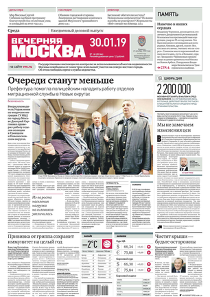 «Вечерняя Москва» — ежедневная российская вечерняя газета, старейшее из вечерних изданий в России, учрежденное в 1923 году. Выходит пять дней в неделю, кроме субботы и воскресенья. Отличается тем, что рассказывает о событиях еще не завершившегося дня. Оперативно освещает хронику и особенности жизни Москвы, охватывает все слои общества и большинство профессиональных и возрастных групп читателей.Издание представлено тремя выпусками – утренним ежедневным, вечерним (выходит три раза в неделю), еженедельным (выходит по четвергам).