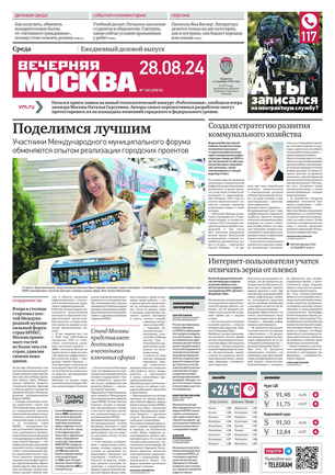 «Вечерняя Москва» — ежедневная российская вечерняя газета, старейшее из вечерних изданий в России, учрежденное в 1923 году. Выходит пять дней в неделю, кроме субботы и воскресенья. Отличается тем, что рассказывает о событиях еще не завершившегося дня. Оперативно освещает хронику и особенности жизни Москвы, охватывает все слои общества и большинство профессиональных и возрастных групп читателей.Издание представлено тремя выпусками – утренним ежедневным, вечерним (выходит три раза в неделю), еженедельным (выходит по четвергам).