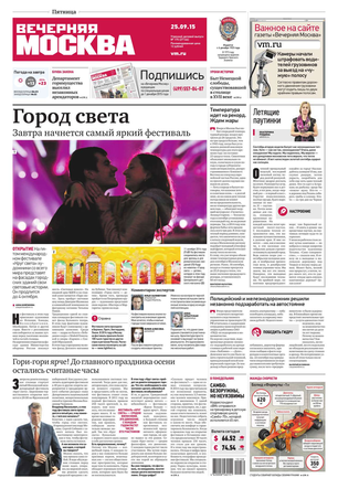 Еженедельный выпуск «Вечерней Москвы» — это значимые события недели, афиша города, новости из сферы отдыха и развлечений, телепрограмма с анонсами и комментариями, авторские колонки журналистов и авторитетные мнения экспертов, детская страничка, специальная рубрика «Золушка», интересные репортажи о необычных судьбах московских жителей, постоянные конкурсы и викторины.