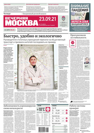 «Вечерняя Москва» — ежедневная российская вечерняя газета, старейшее из вечерних изданий в России, учрежденное в 1923 году. Выходит пять дней в неделю, кроме субботы и воскресенья. Отличается тем, что рассказывает о событиях еще не завершившегося дня. Оперативно освещает хронику и особенности жизни Москвы, охватывает все слои общества и большинство профессиональных и возрастных групп читателей.Издание представлено тремя выпусками – утренним ежедневным, вечерним (выходит три раза в неделю), еженедельным (выходит по четвергам).