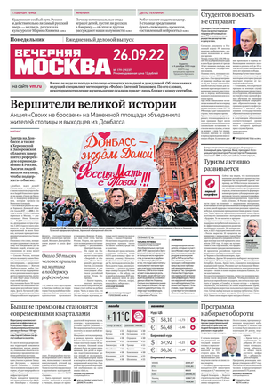 «Вечерняя Москва» — ежедневная российская вечерняя газета, старейшее из вечерних изданий в России, учрежденное в 1923 году. Выходит пять дней в неделю, кроме субботы и воскресенья. Отличается тем, что рассказывает о событиях еще не завершившегося дня. Оперативно освещает хронику и особенности жизни Москвы, охватывает все слои общества и большинство профессиональных и возрастных групп читателей.Издание представлено тремя выпусками – утренним ежедневным, вечерним (выходит три раза в неделю), еженедельным (выходит по четвергам).