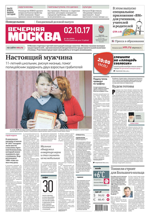 «Вечерняя Москва» — ежедневная российская вечерняя газета, старейшее из вечерних изданий в России, учрежденное в 1923 году. Выходит пять дней в неделю, кроме субботы и воскресенья. Отличается тем, что рассказывает о событиях еще не завершившегося дня. Оперативно освещает хронику и особенности жизни Москвы, охватывает все слои общества и большинство профессиональных и возрастных групп читателей.Издание представлено тремя выпусками – утренним ежедневным, вечерним (выходит три раза в неделю), еженедельным (выходит по четвергам).