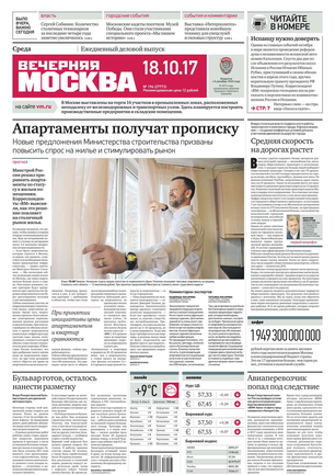 «Вечерняя Москва» — ежедневная российская вечерняя газета, старейшее из вечерних изданий в России, учрежденное в 1923 году. Выходит пять дней в неделю, кроме субботы и воскресенья. Отличается тем, что рассказывает о событиях еще не завершившегося дня. Оперативно освещает хронику и особенности жизни Москвы, охватывает все слои общества и большинство профессиональных и возрастных групп читателей.Издание представлено тремя выпусками – утренним ежедневным, вечерним (выходит три раза в неделю), еженедельным (выходит по четвергам).