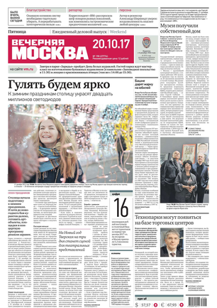 «Вечерняя Москва» — ежедневная российская вечерняя газета, старейшее из вечерних изданий в России, учрежденное в 1923 году. Выходит пять дней в неделю, кроме субботы и воскресенья. Отличается тем, что рассказывает о событиях еще не завершившегося дня. Оперативно освещает хронику и особенности жизни Москвы, охватывает все слои общества и большинство профессиональных и возрастных групп читателей.Издание представлено тремя выпусками – утренним ежедневным, вечерним (выходит три раза в неделю), еженедельным (выходит по четвергам).