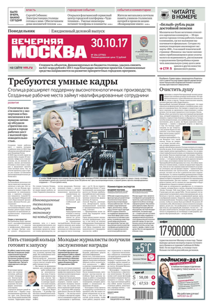 «Вечерняя Москва» — ежедневная российская вечерняя газета, старейшее из вечерних изданий в России, учрежденное в 1923 году. Выходит пять дней в неделю, кроме субботы и воскресенья. Отличается тем, что рассказывает о событиях еще не завершившегося дня. Оперативно освещает хронику и особенности жизни Москвы, охватывает все слои общества и большинство профессиональных и возрастных групп читателей.Издание представлено тремя выпусками – утренним ежедневным, вечерним (выходит три раза в неделю), еженедельным (выходит по четвергам).