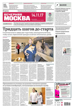 «Вечерняя Москва» — ежедневная российская вечерняя газета, старейшее из вечерних изданий в России, учрежденное в 1923 году. Выходит пять дней в неделю, кроме субботы и воскресенья. Отличается тем, что рассказывает о событиях еще не завершившегося дня. Оперативно освещает хронику и особенности жизни Москвы, охватывает все слои общества и большинство профессиональных и возрастных групп читателей.Издание представлено тремя выпусками – утренним ежедневным, вечерним (выходит три раза в неделю), еженедельным (выходит по четвергам).