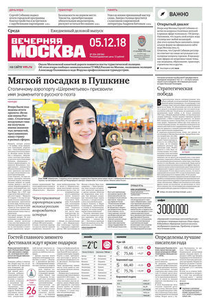 «Вечерняя Москва» — ежедневная российская вечерняя газета, старейшее из вечерних изданий в России, учрежденное в 1923 году. Выходит пять дней в неделю, кроме субботы и воскресенья. Отличается тем, что рассказывает о событиях еще не завершившегося дня. Оперативно освещает хронику и особенности жизни Москвы, охватывает все слои общества и большинство профессиональных и возрастных групп читателей.Издание представлено тремя выпусками – утренним ежедневным, вечерним (выходит три раза в неделю), еженедельным (выходит по четвергам).