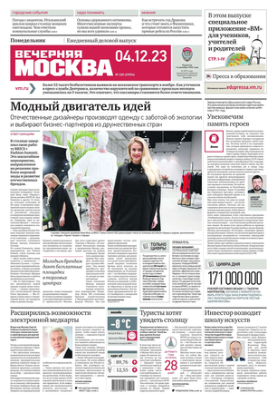 «Вечерняя Москва» — ежедневная российская вечерняя газета, старейшее из вечерних изданий в России, учрежденное в 1923 году. Выходит пять дней в неделю, кроме субботы и воскресенья. Отличается тем, что рассказывает о событиях еще не завершившегося дня. Оперативно освещает хронику и особенности жизни Москвы, охватывает все слои общества и большинство профессиональных и возрастных групп читателей.Издание представлено тремя выпусками – утренним ежедневным, вечерним (выходит три раза в неделю), еженедельным (выходит по четвергам).